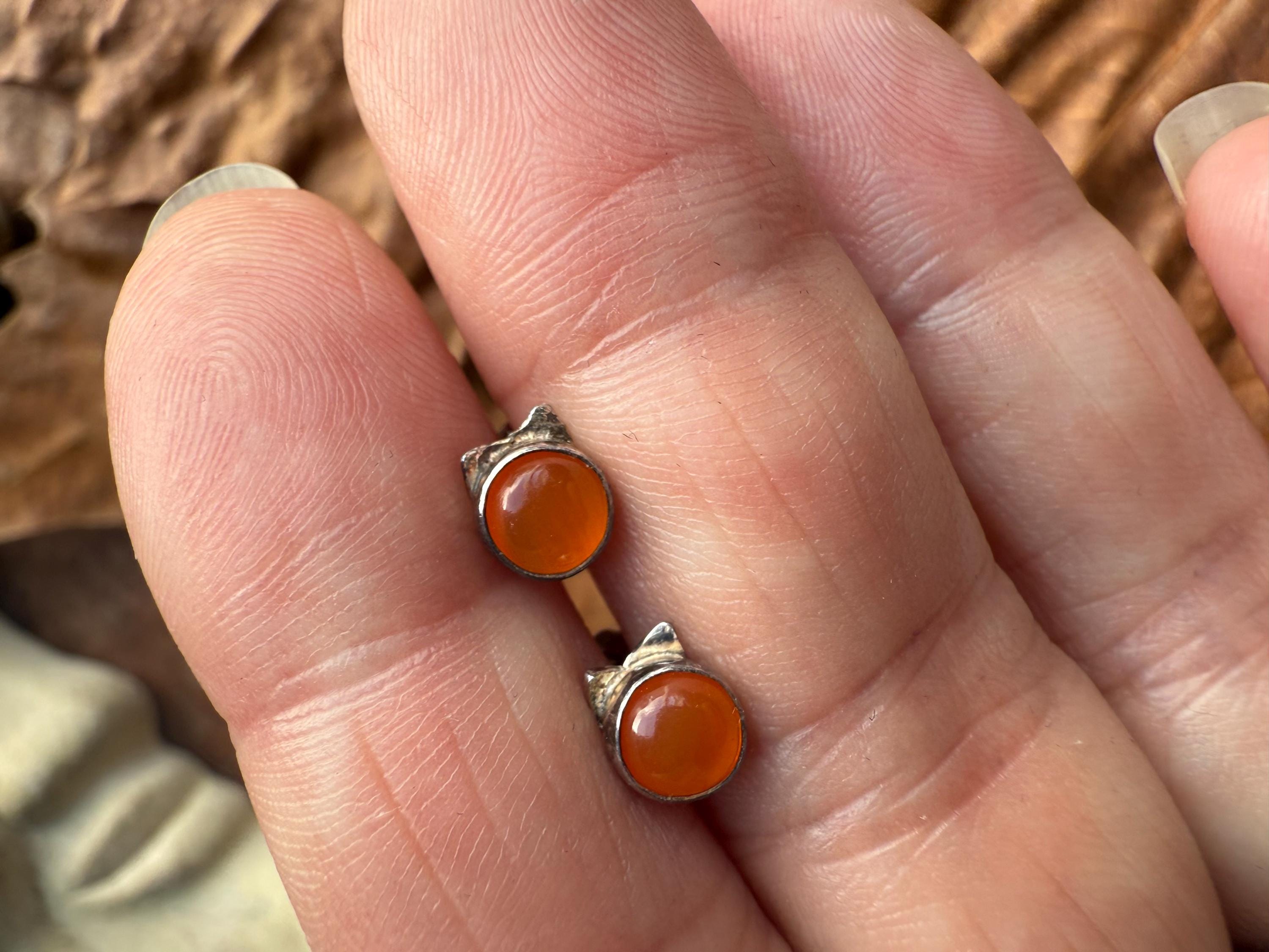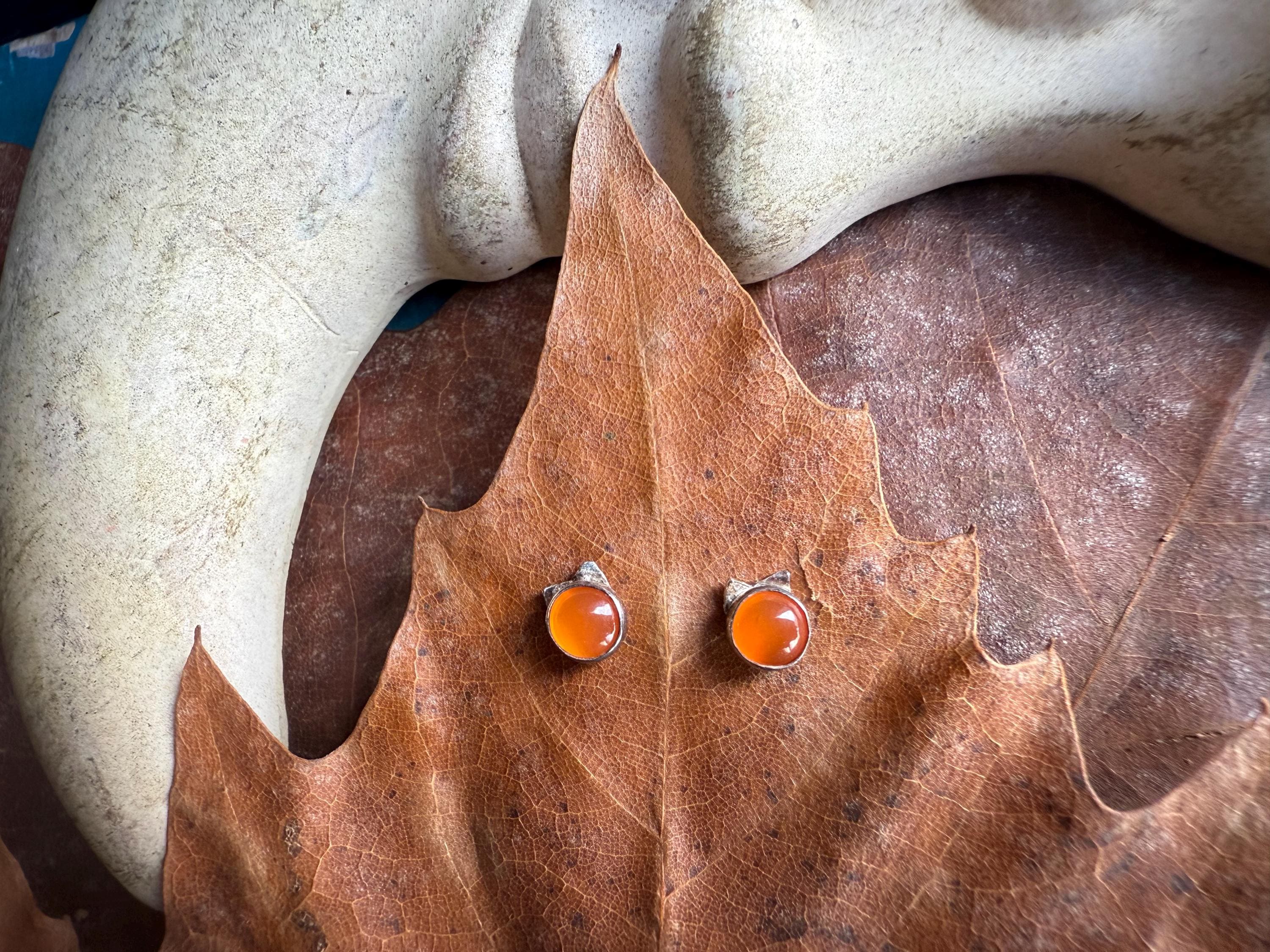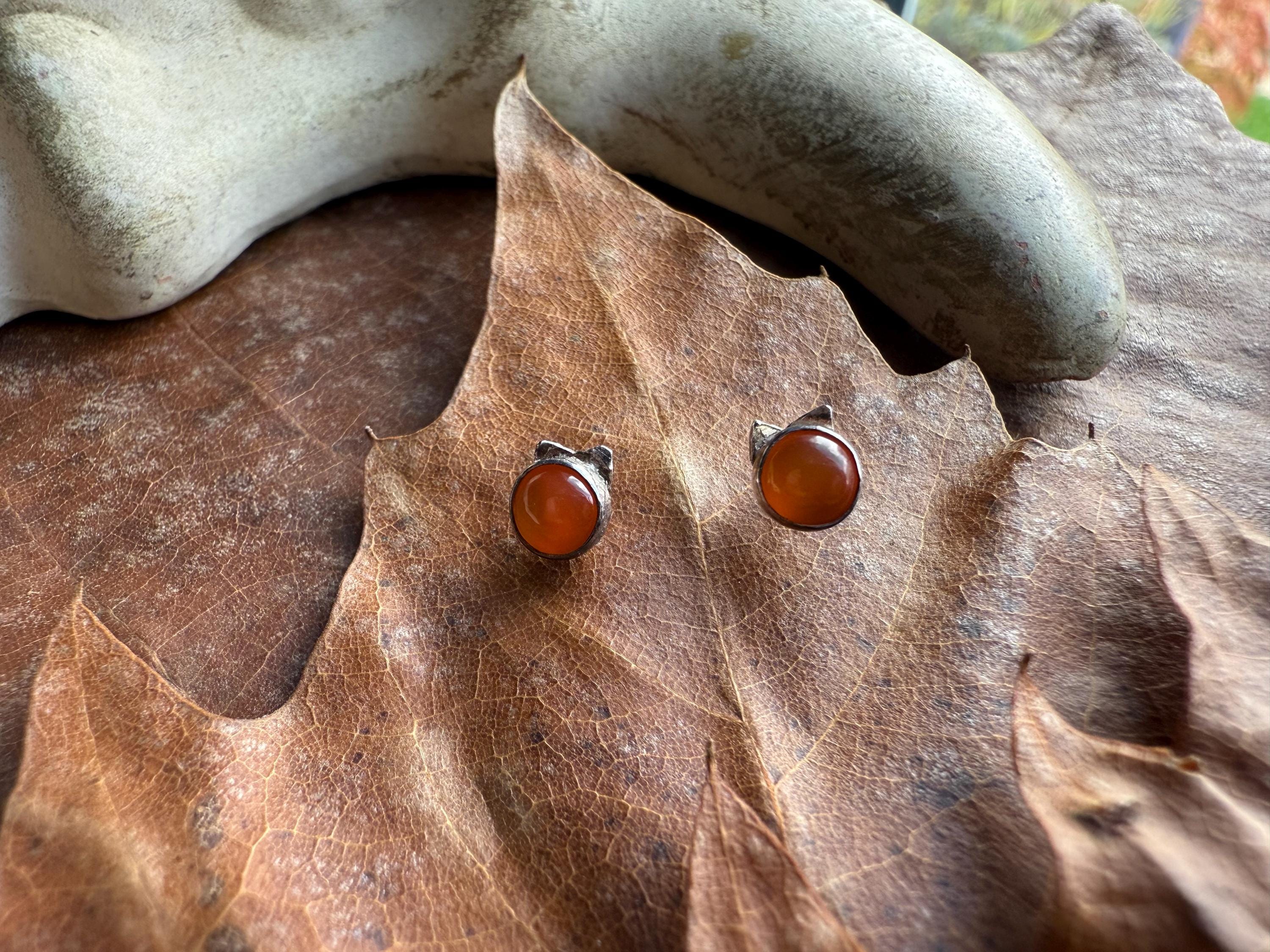 Tiny Carnelian Cat Earrings – Handmade Recycled Silver
