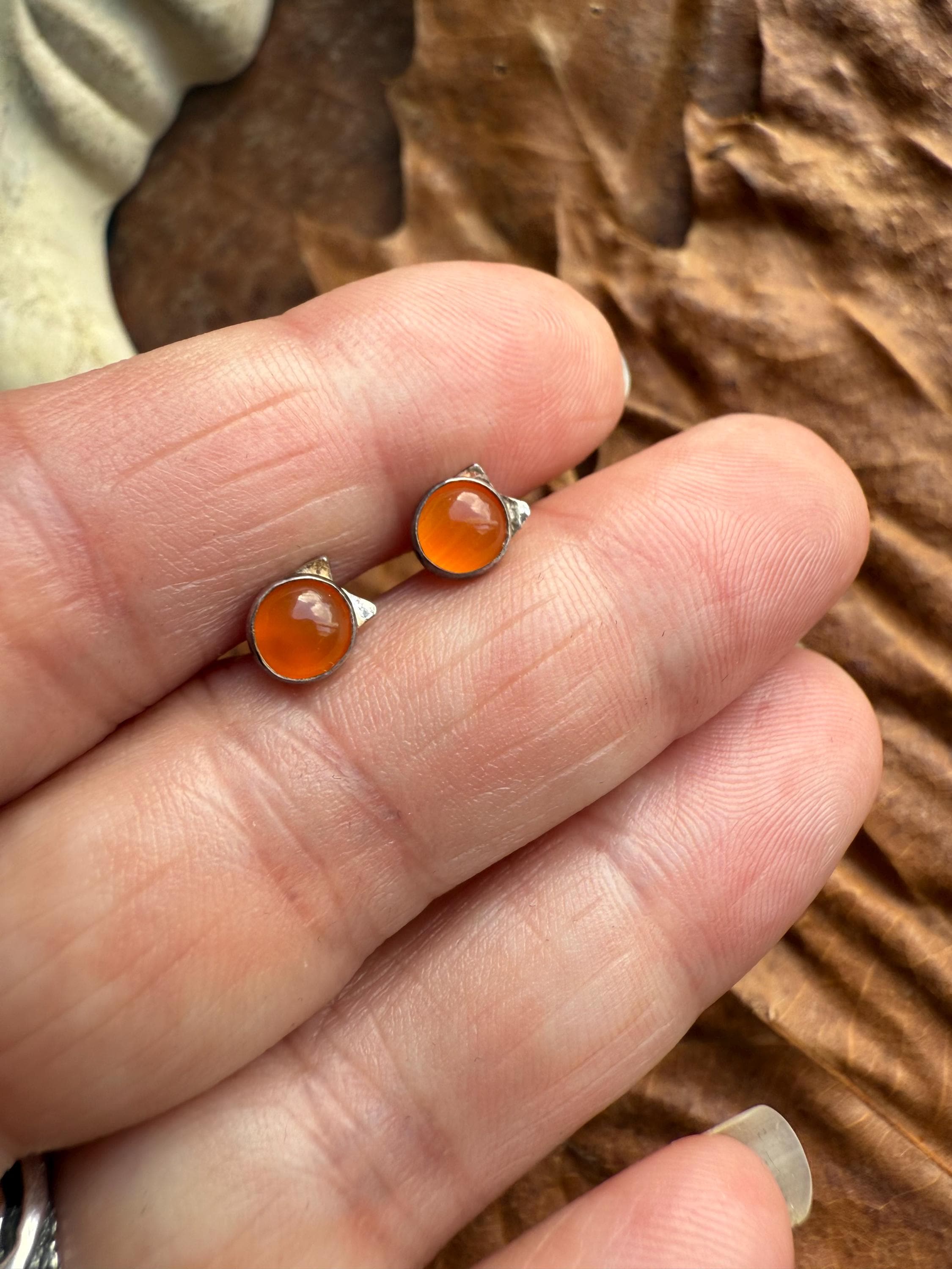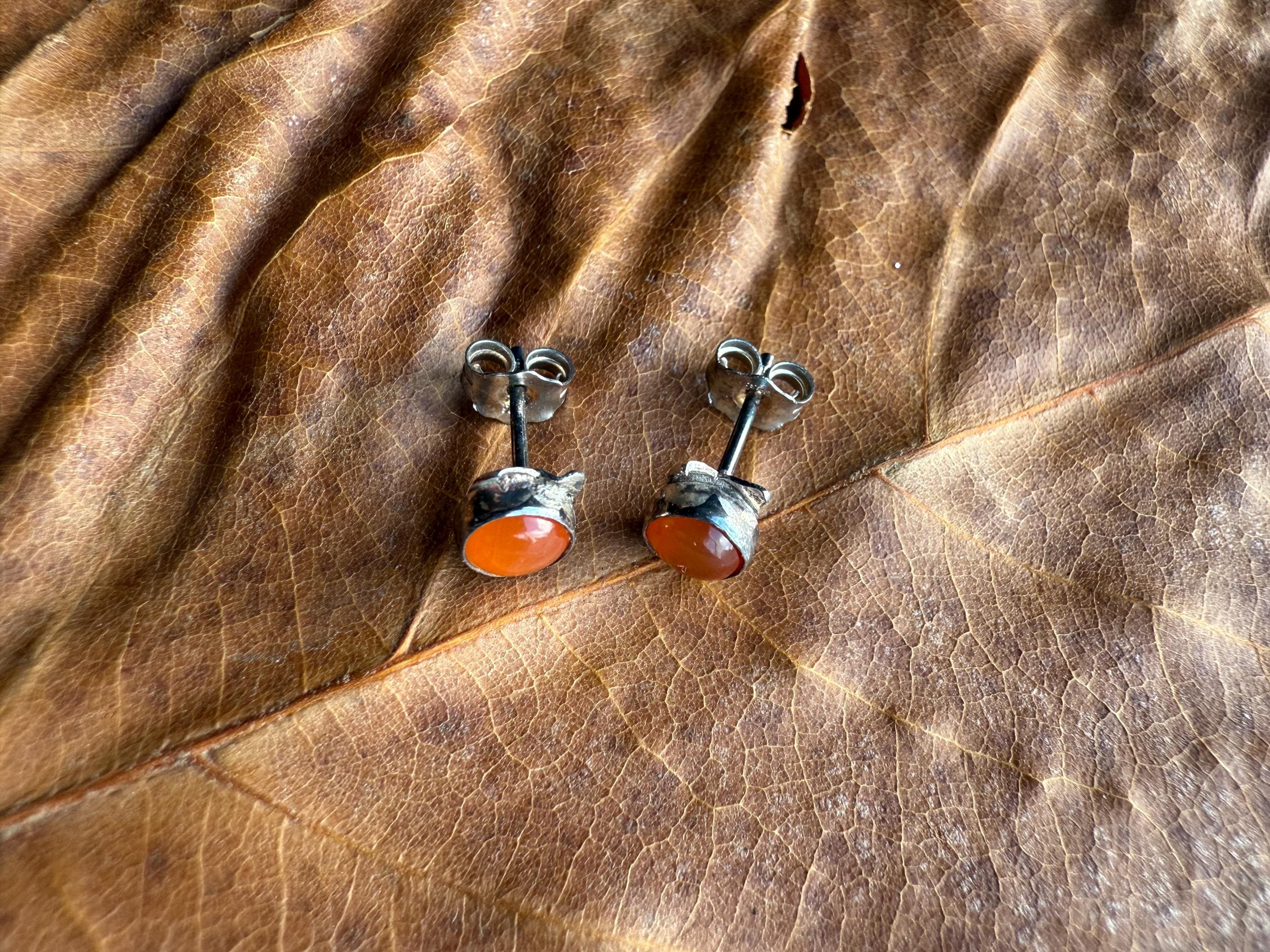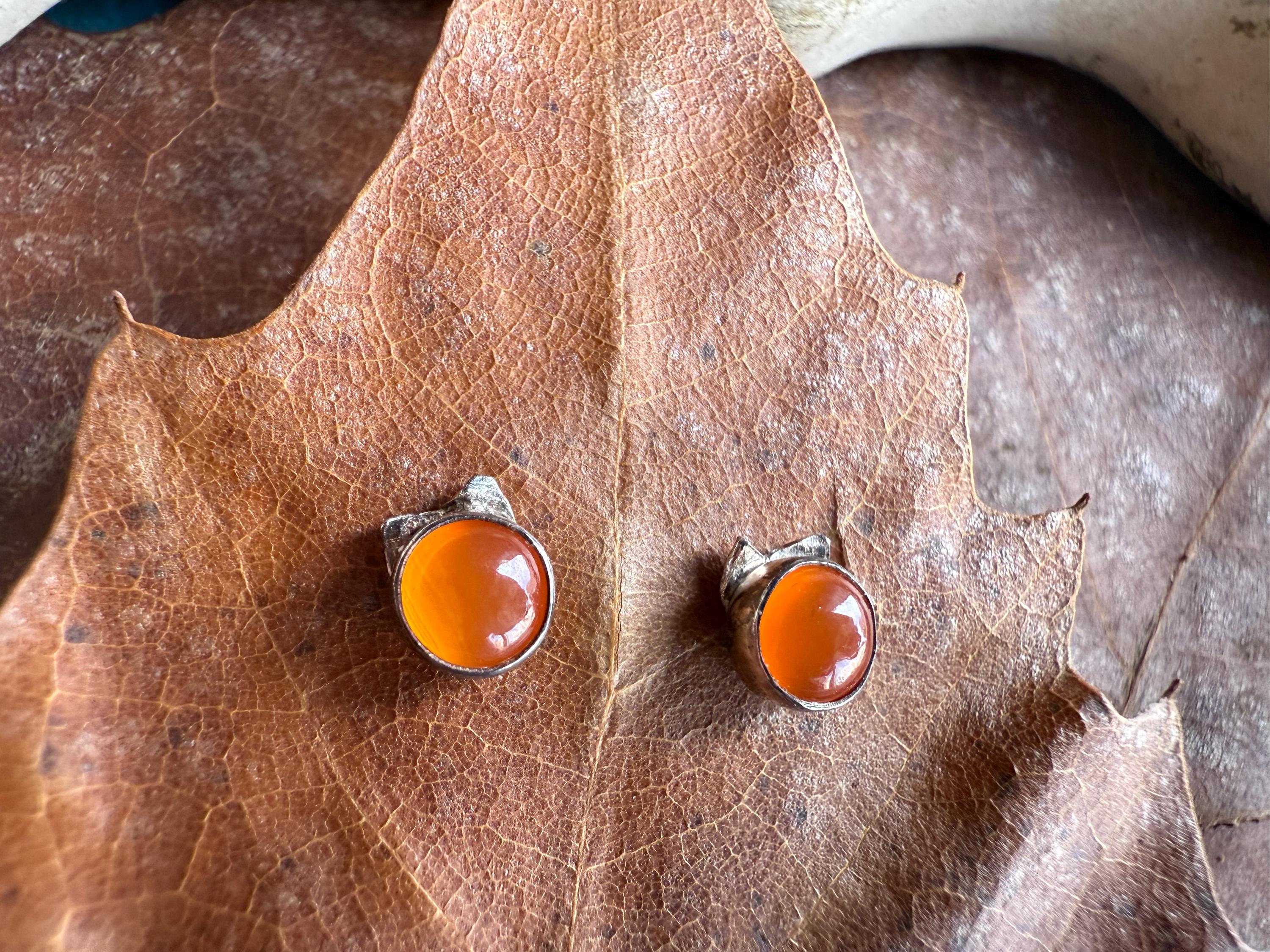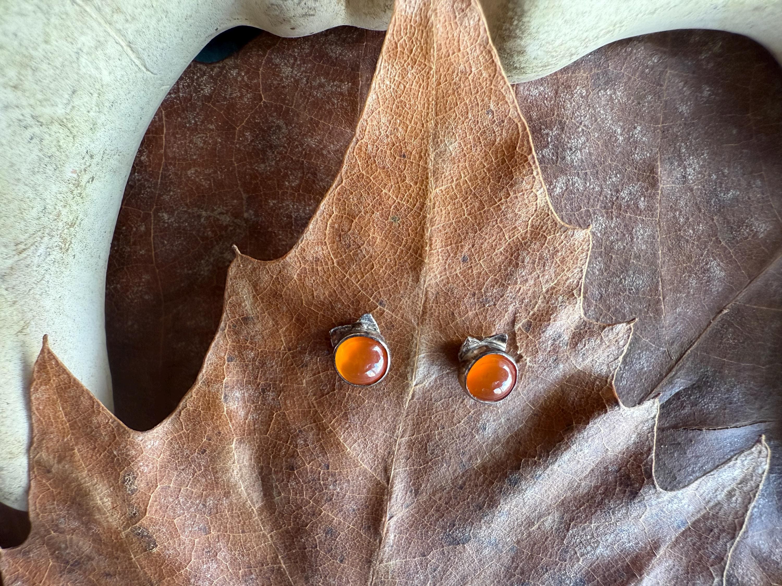 Tiny Carnelian Cat Earrings – Handmade Recycled Silver